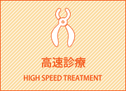 高速診療 高速診療とは、どうしても歯医者が怖くて一秒でも長く診療台に座っていたくないという方やまだ病院に来るだけで泣いてしまうお子様などに行います。できるだけ短時間で患者様に負担のない治療をさせていただきますのでご希望の方はご相談ください。 主に使用する設備